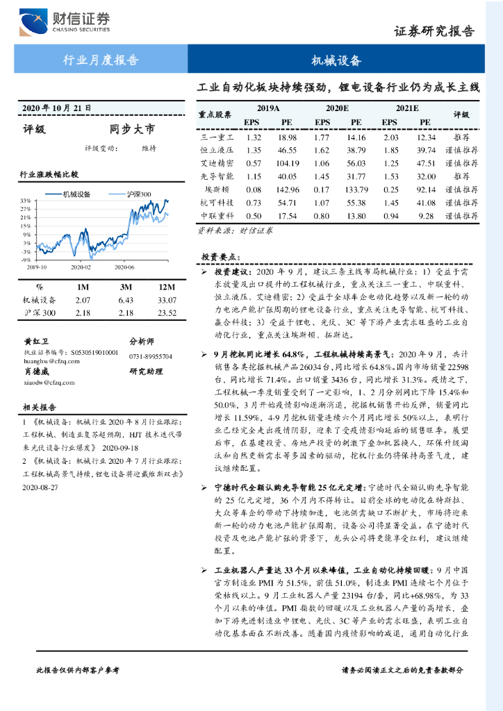 财信证券:机械设备行业月度报告:工业自动化板块持续强劲,锂电设备行业仍为成长主线.pdf