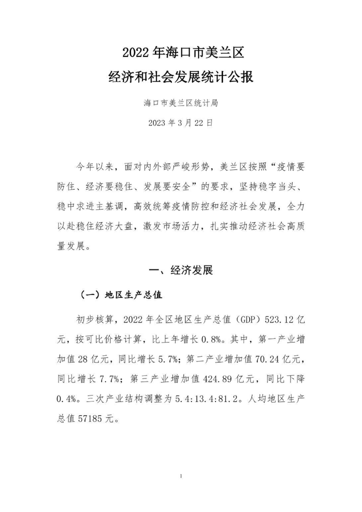 2022年海口市美兰区经济和社会发展统计公报.pdf