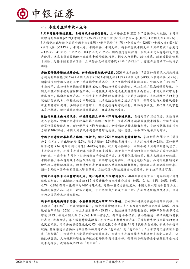 中银证券:保险行业:上市险企7月保费点评-7月单月保费增速放缓,负债端表现分化.pdf