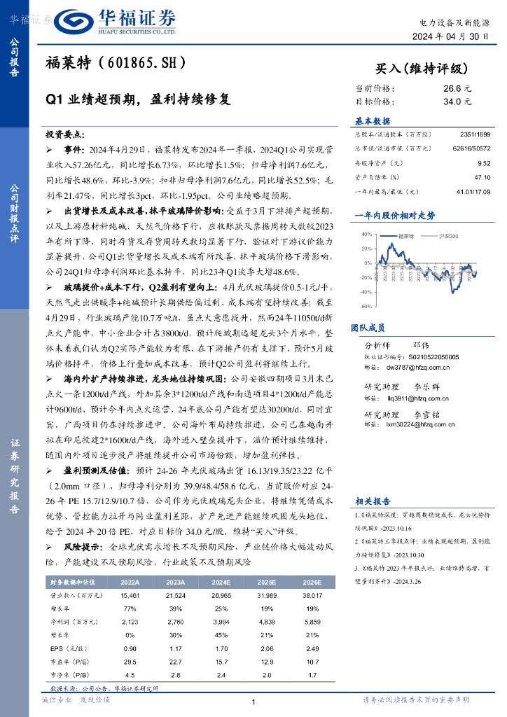 华福证券:福莱特(601865)-Q1业绩超预期,盈利持续修复.pdf