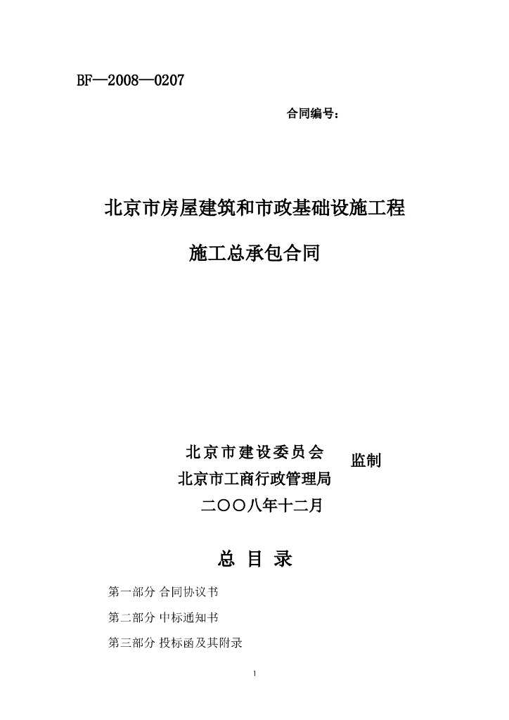 BF-2008-0207 北京市房屋建筑和市政基础设施工程施工总承包合同.doc