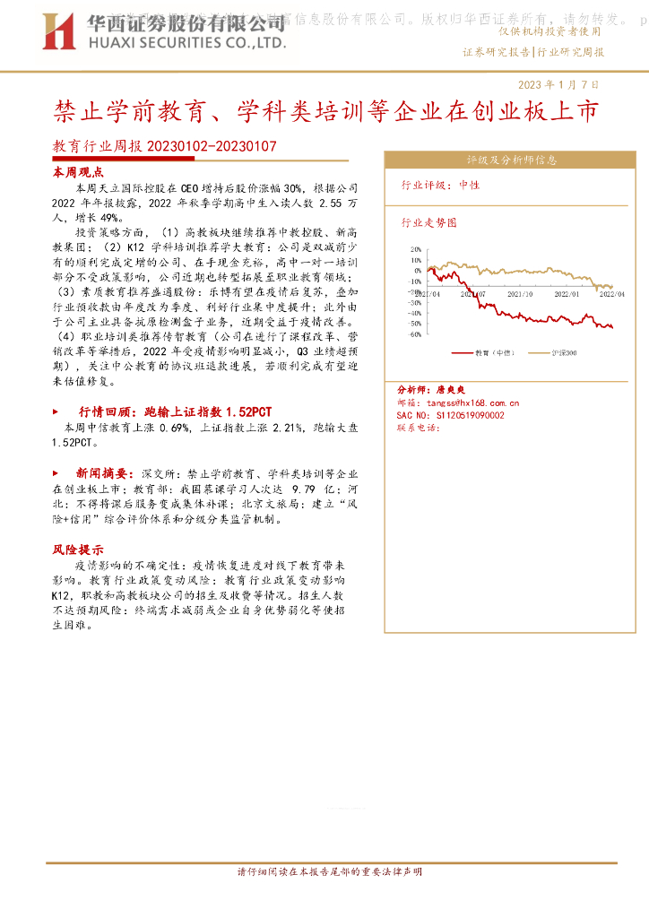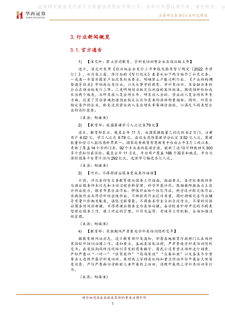 华西证券:教育行业周报:禁止学前教育、学科类培训等企业在创业板上市.pdf