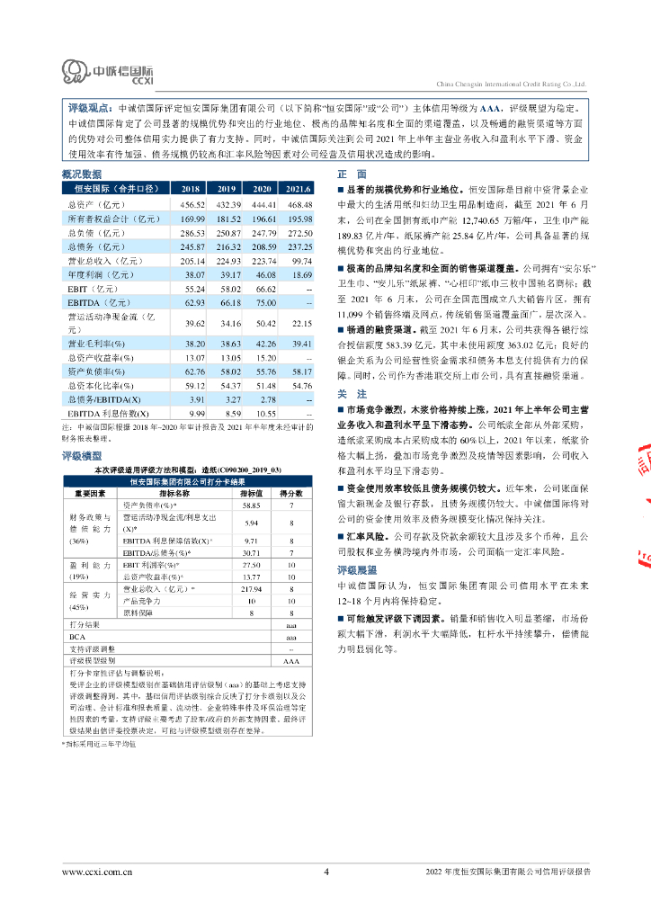 中诚信:恒安国际集团有限公司2022年度信用评级报告.pdf