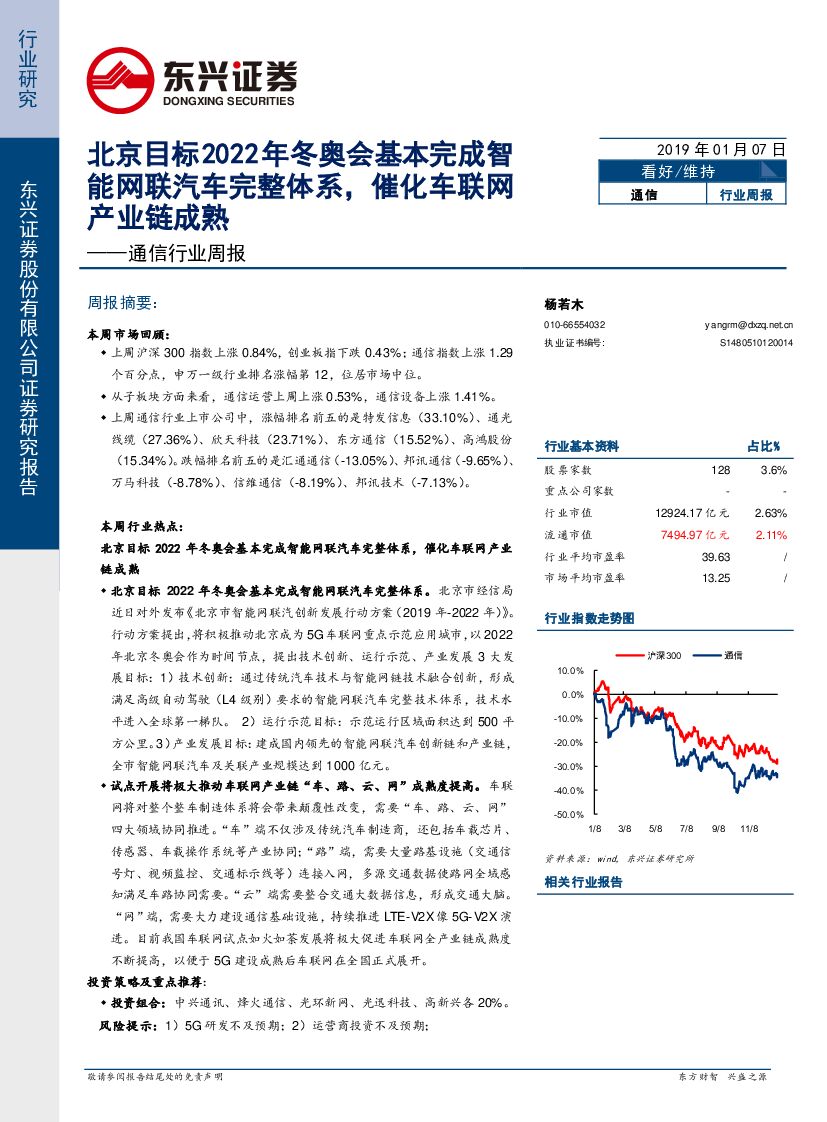 东兴证券:通信行业周报:北京目标2022年冬奥会基本完成智能网联汽车完整体系,催化车联网产业链成熟.pdf