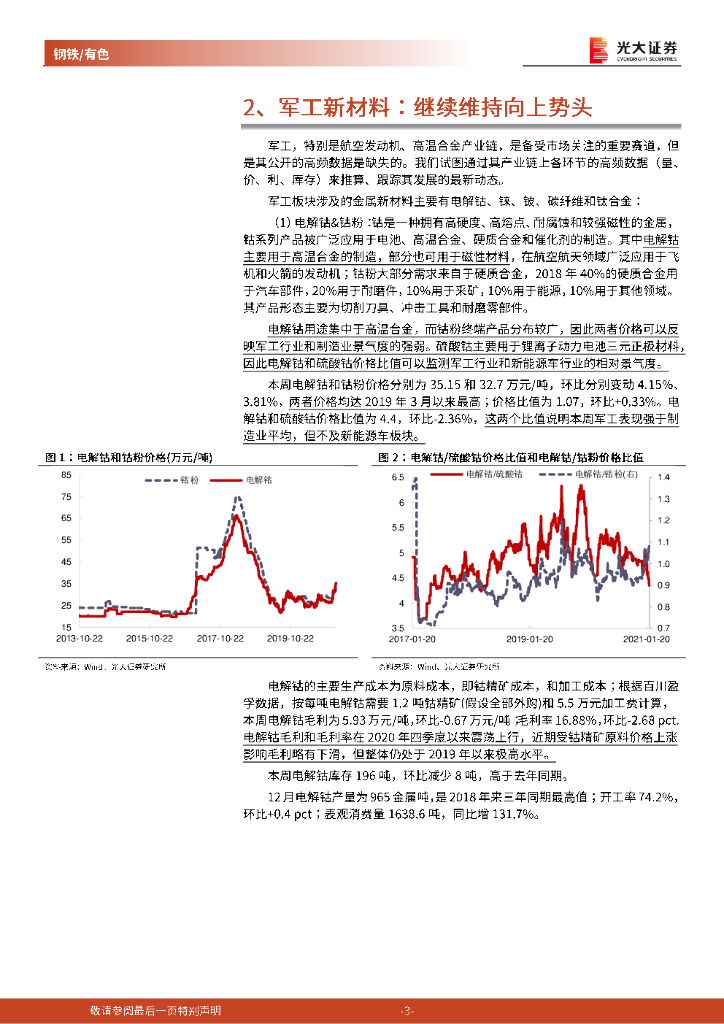 光大证券:金属新材料高频数据周报:新能源车、消费电子、军工等领域金属新材料集体继续维持向上态势.pdf