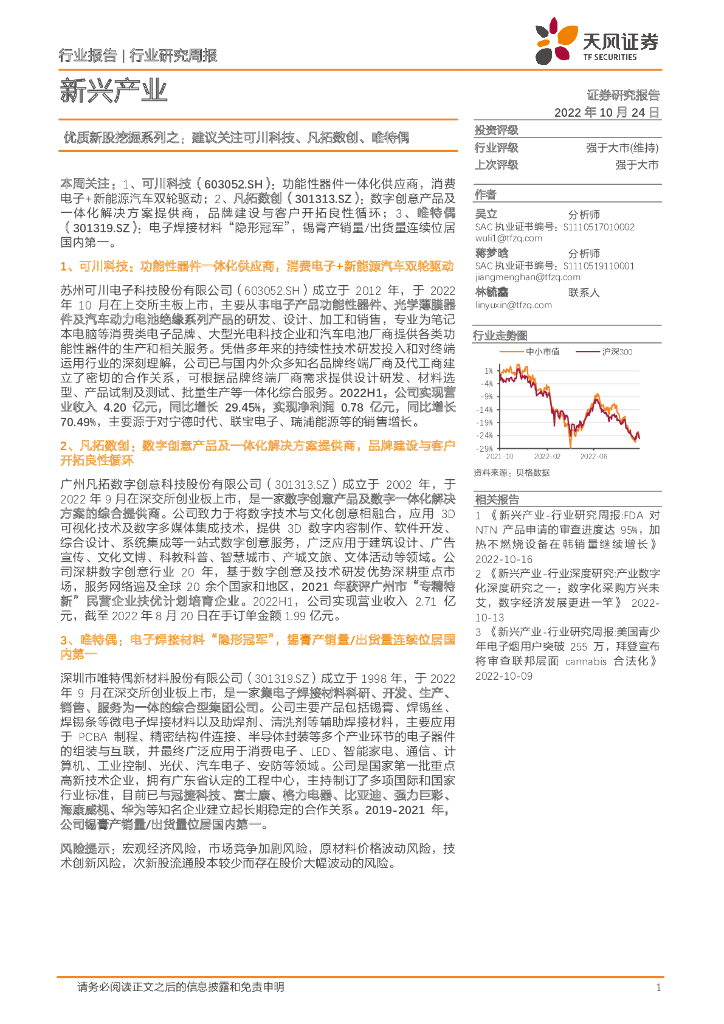 天风证券:新兴产业行业研究周报:优质新股挖掘系列之:建议关注可川科技、凡拓数创、唯特偶.pdf