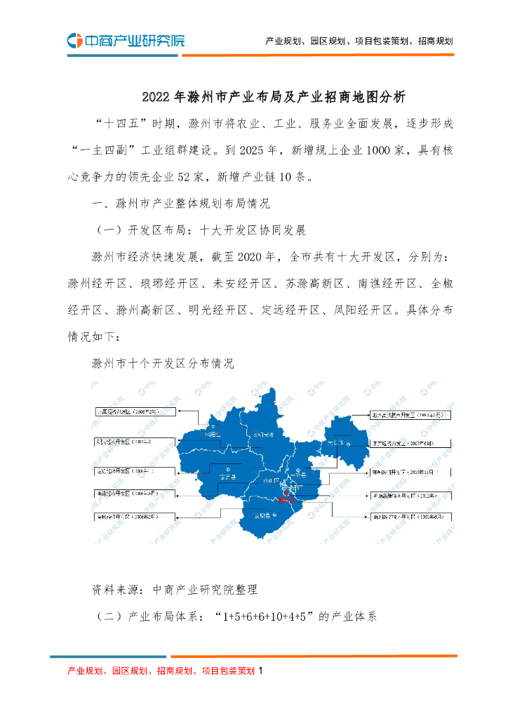 2022年滁州市产业布局及产业招商地图分析.pdf