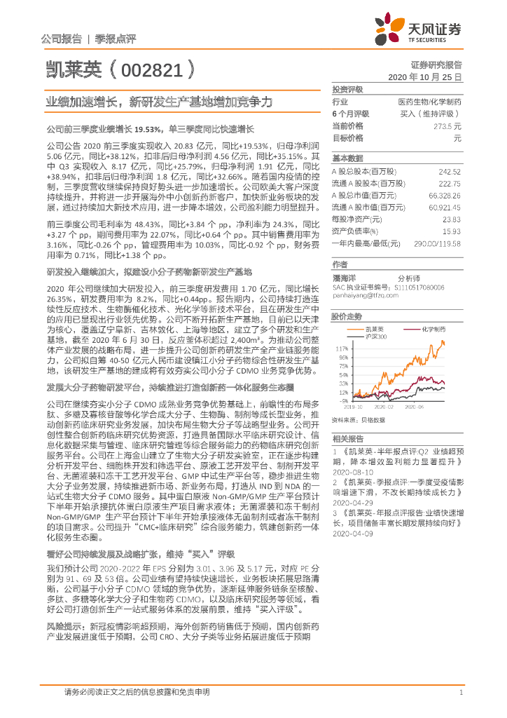 天风证券:凯莱英(002821)-业绩加速增长,新研发生产基地增加竞争力.pdf