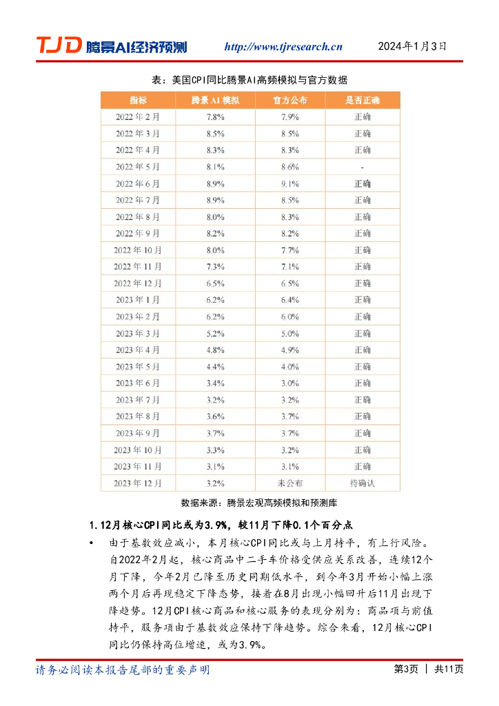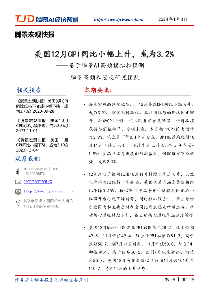 腾景AI经济预测:腾景宏观快报:美国12月CPI同比小幅上升,或为3.2%——基于腾景AI高频模拟和预测.pdf