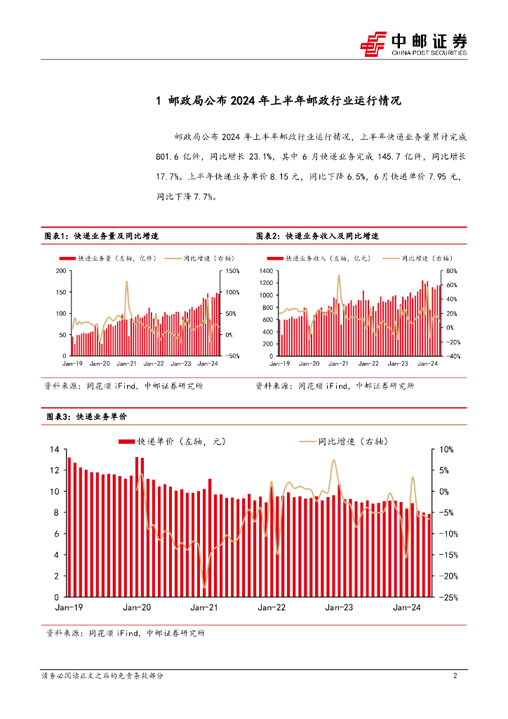 中邮证券:快递2024年6月数据点评:上半年件量突破800亿,看好行业盈利改善.pdf