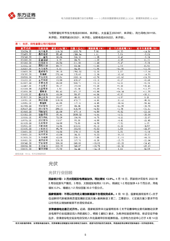 东方证券:电力设备及新能源行业周报:1-3月份全国新增光伏装机33.3GW,新增风电装机10.4GW.pdf