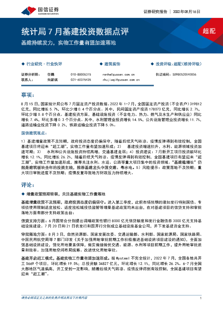 国信证券:建筑装饰行业统计局7月基建投资数据点评:基建持续发力, 实物工作量有望加速落地.pdf