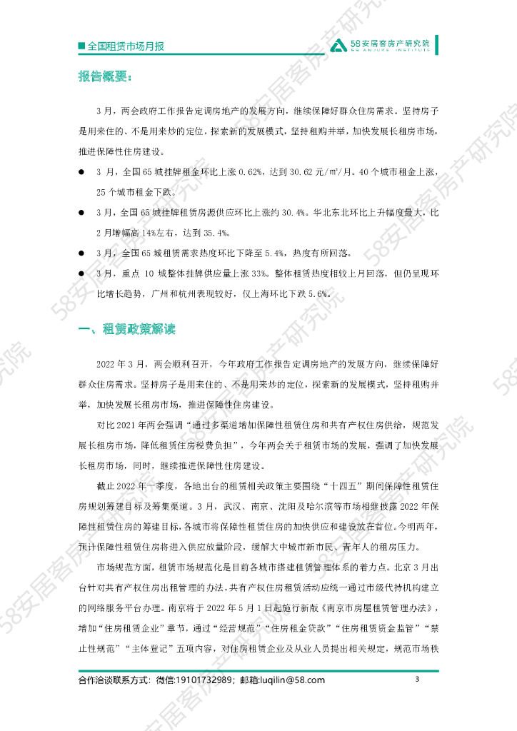 58安居客房产研究院:2022年3月全国租房市场报告.pdf