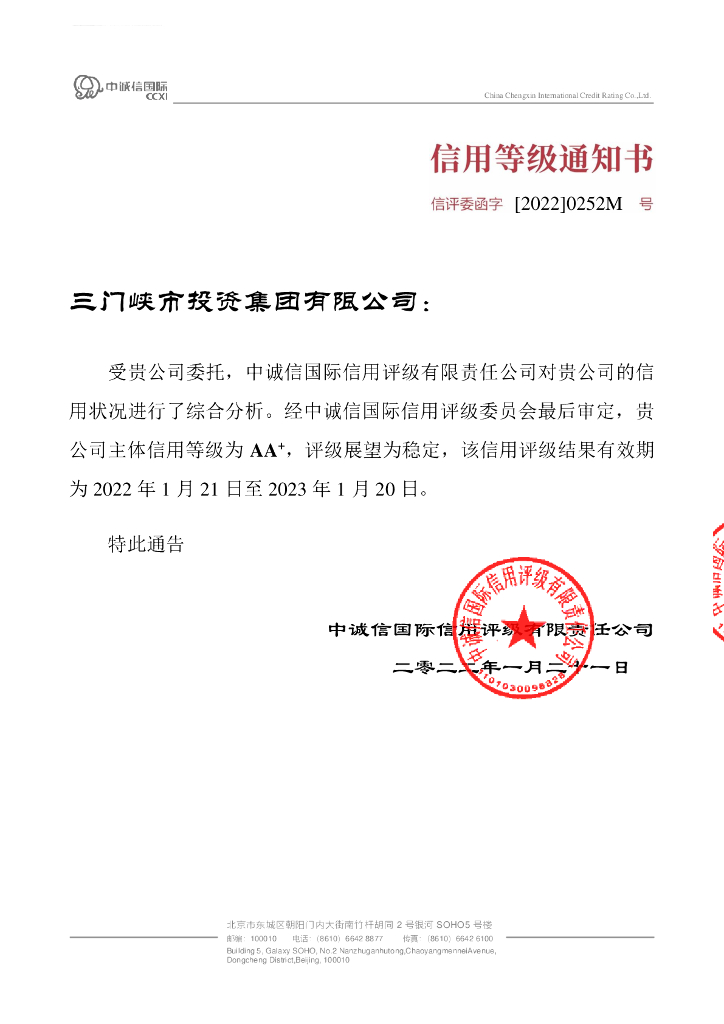 中诚信:三门峡市投资集团有限公司主体信用评级报告.pdf