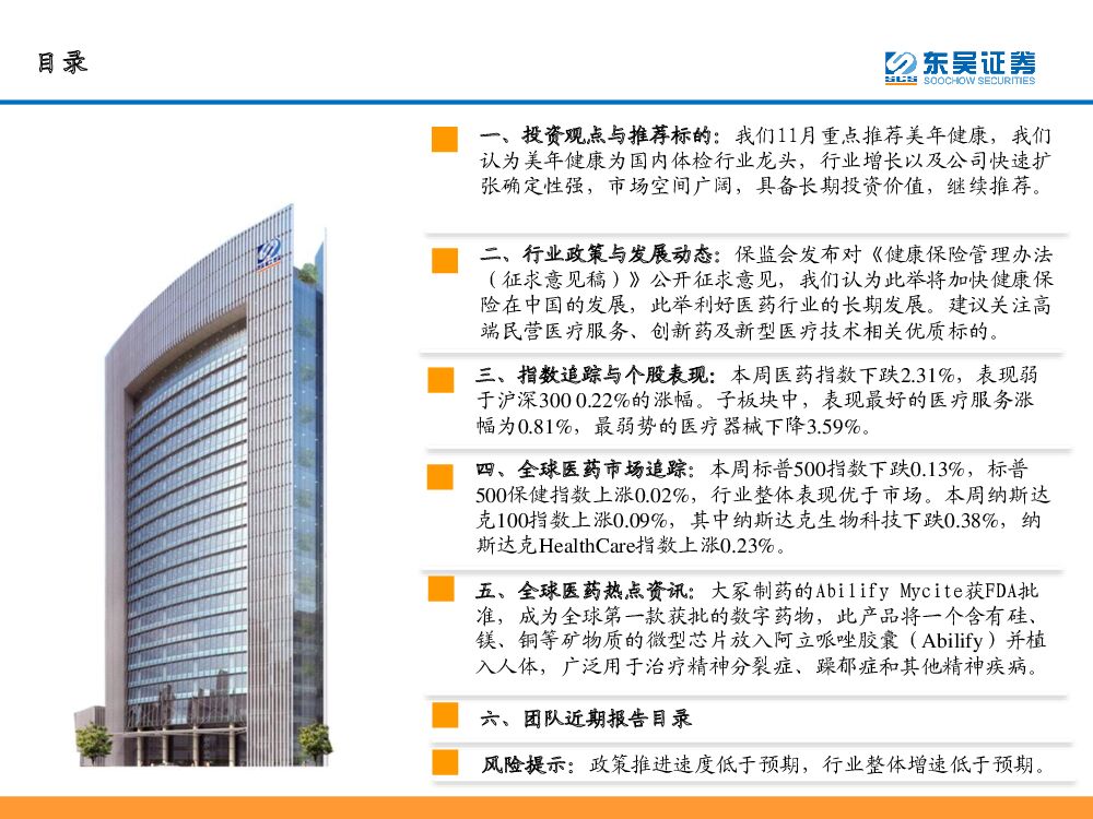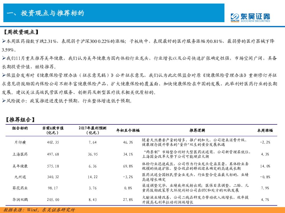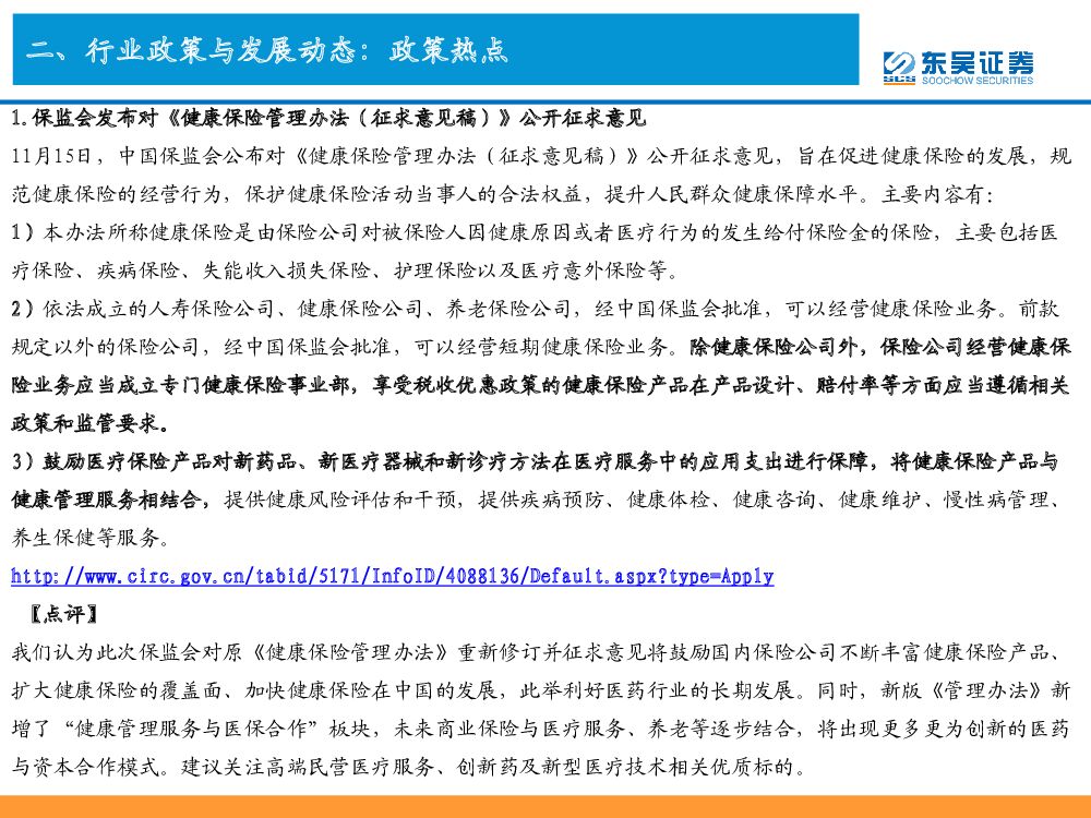 东吴证券:东吴医药行业周观点:保监会发布《健康保险管理办法(征求意见稿)》,建议关注高端民营医疗服务、创新药及新型医疗技术相关优质标的.pdf