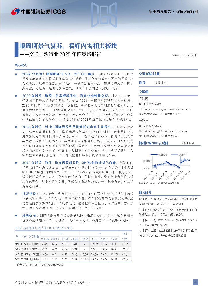 中国银河:交通运输行业2025年度策略报告:顺周期景气复苏,看好内需相关板块.pdf
