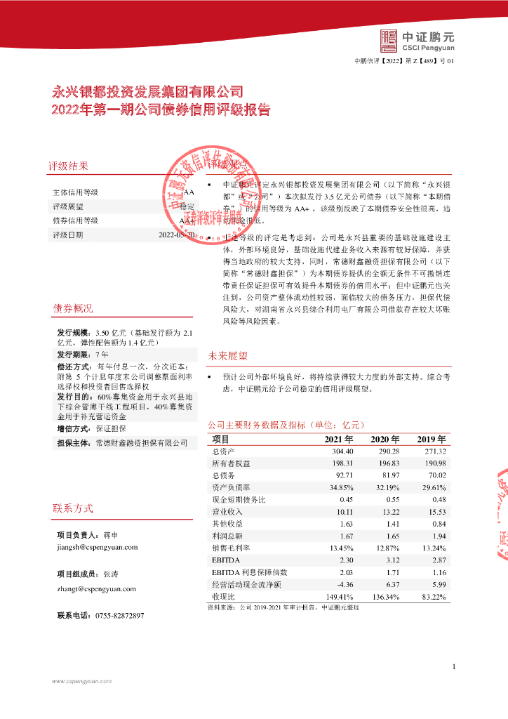 鹏元:永兴银都投资发展集团有限公司2022年第一期公司债券信用评级报告.pdf