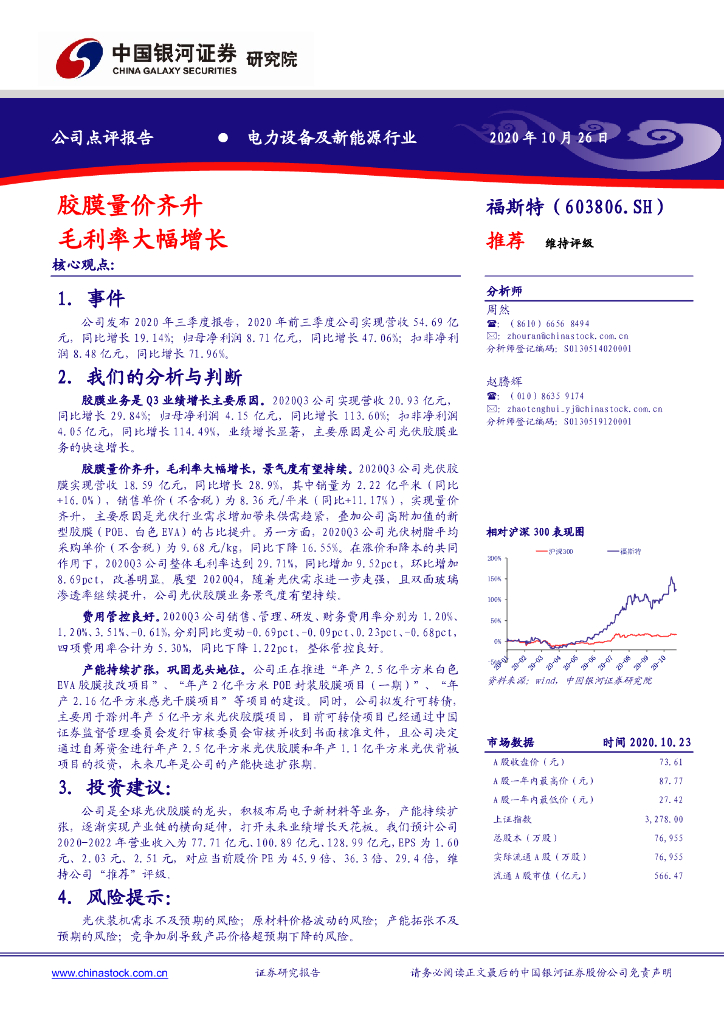 中国银河:福斯特(603806)-胶膜量价齐升 毛利率大幅增长.pdf