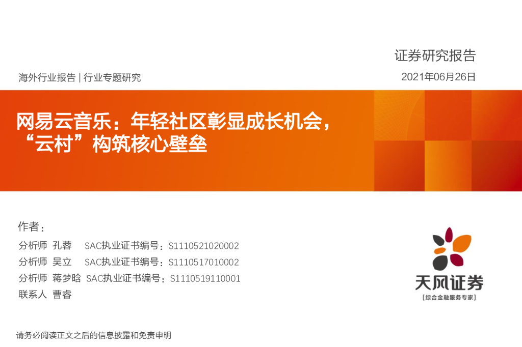 天风证券:传媒行业:网易云音乐:年轻社区彰显成长机会,“云村”构筑核心壁垒.pdf