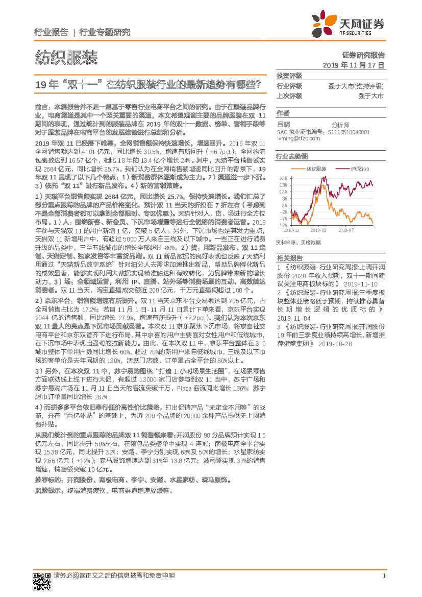 天风证券:纺织服装行业专题研究:19年“双十一”在纺织服装行业的最新趋势有哪些?.pdf