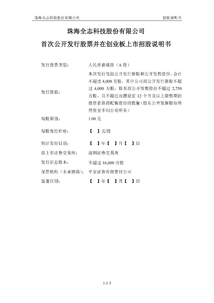 珠海全志科技股份有限公司深交所创业板IPO上市招股说明书.pdf