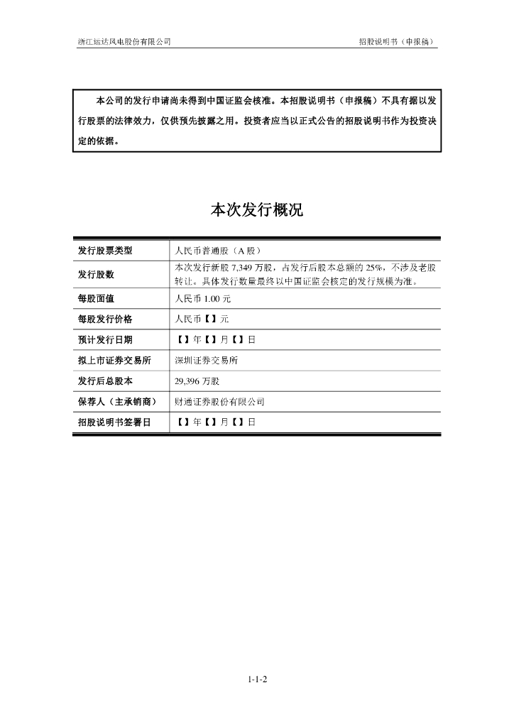 浙江运达风电股份有限公司深交所创业板IPO上市招股说明书.pdf