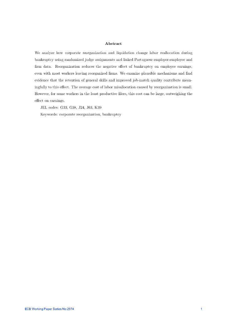 欧洲央行:破产中的公司重组与劳动分配(英文版).pdf