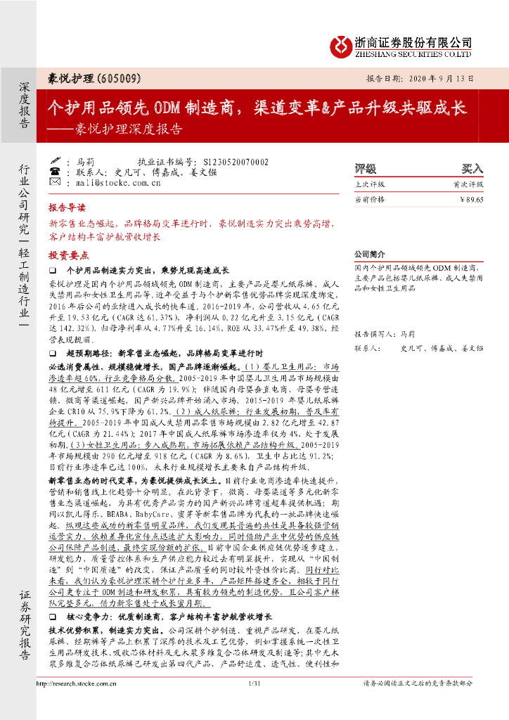 浙商证券:豪悦护理深度报告:个护用品领先ODM制造商,渠道变革&产品升级共驱成长.pdf