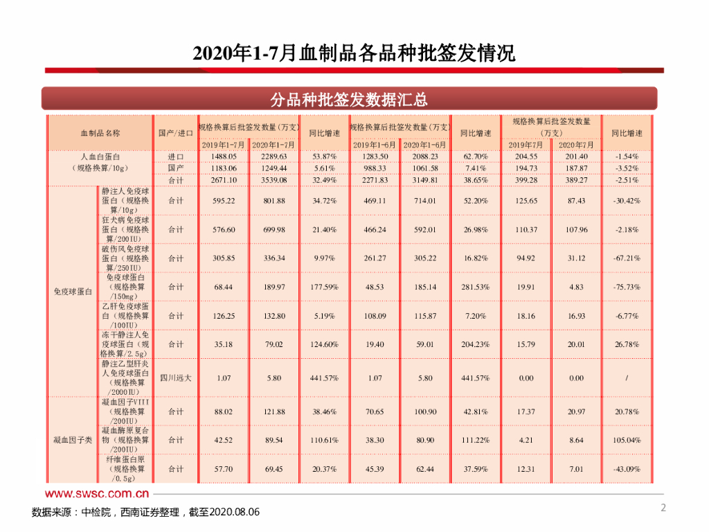 西南证券:2020年1-7月血制品批签发:7月人白略有下滑.pdf