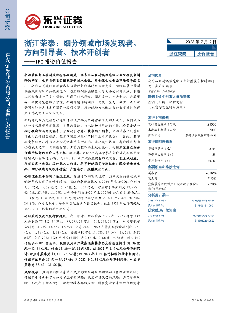 东兴证券:IPO投资价值报告:浙江荣泰:细分领域市场发现者、方向引导者、技术开创者.pdf