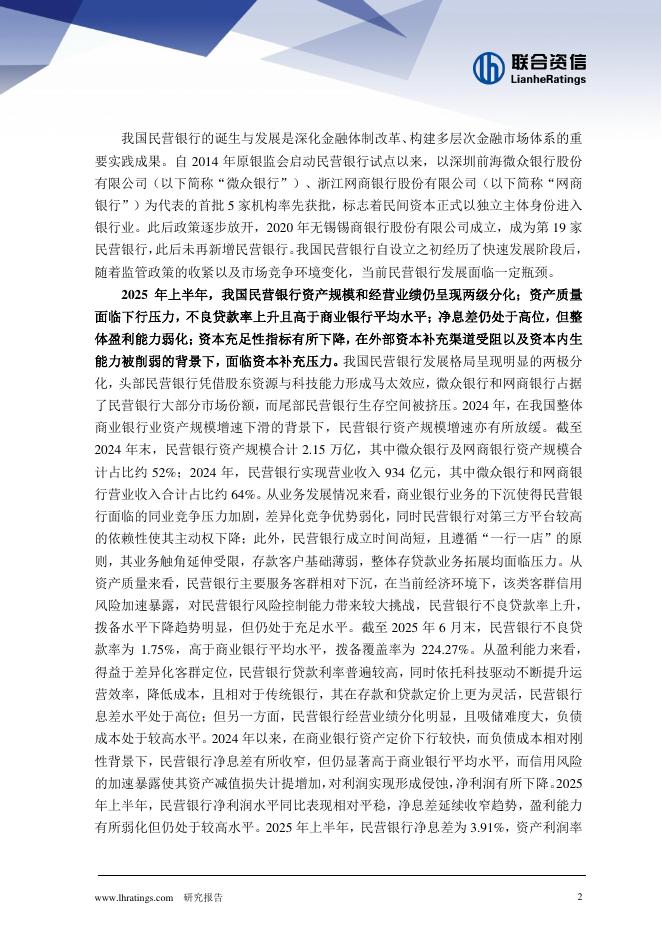联合资信:2025年半年度民营银行行业分析报告.pdf