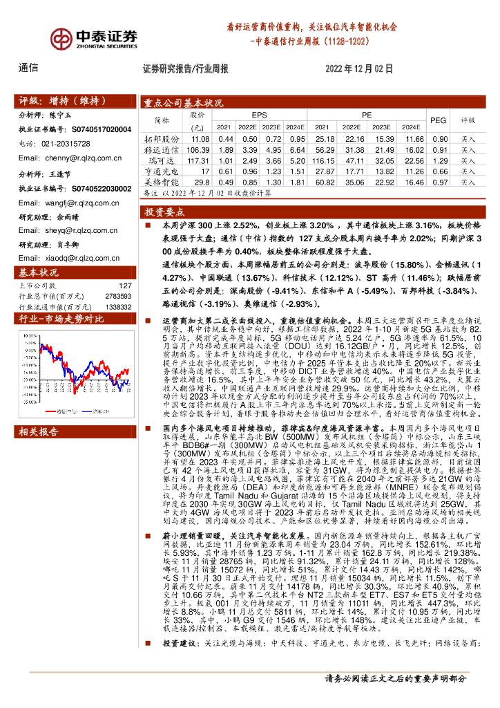 中泰证券:中泰通信行业周报:看好运营商价值重构,关注低位汽车智能化机会.pdf