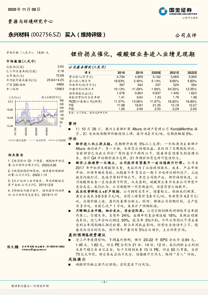 国金证券:永兴材料(002756)-锂价拐点催化,碳酸锂业务进入业绩兑现期.pdf
