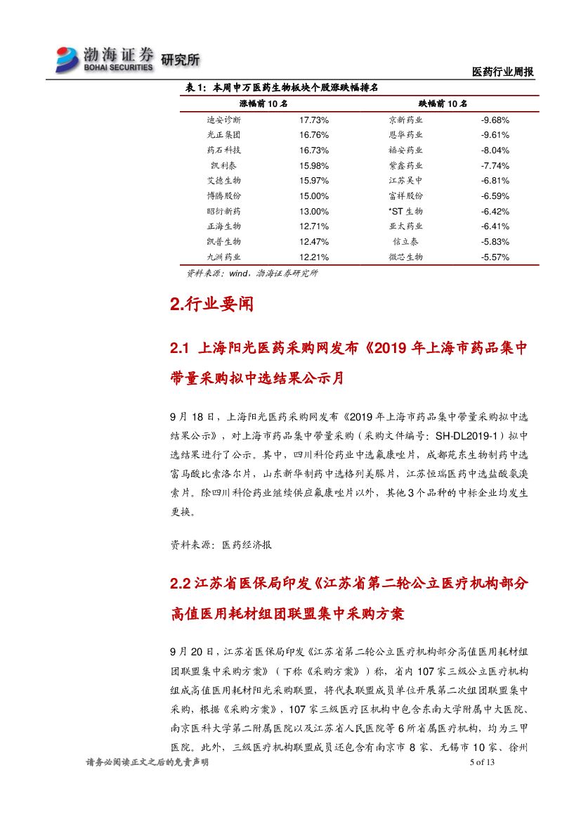 渤海证券:医药行业周报:“4+7”带量采购扩容,价格继续下降.pdf