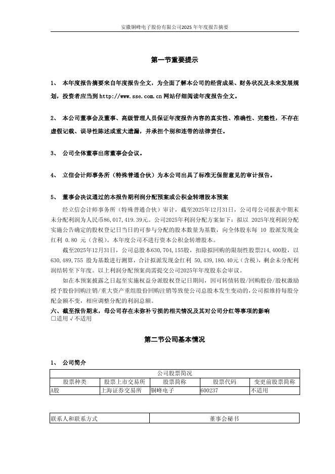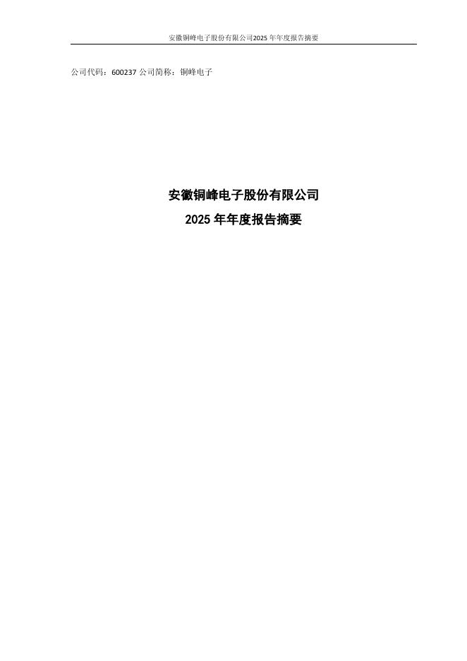 600237-铜峰电子:铜峰电子2025年年度报告摘要.pdf