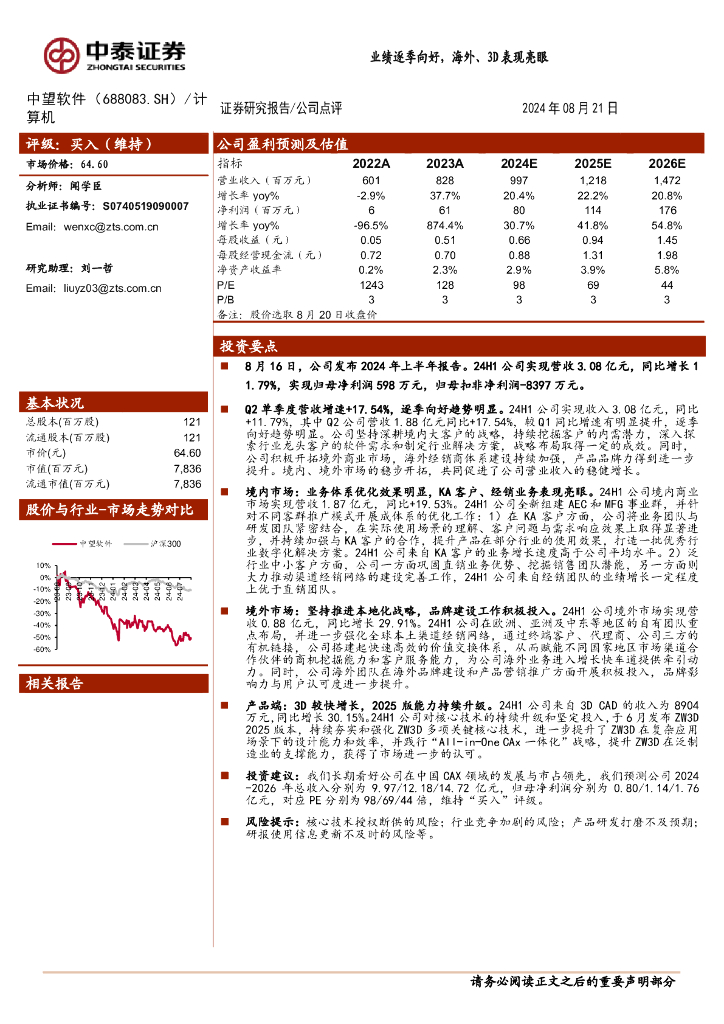 中泰证券:中望软件(688083)-业绩逐季向好,海外、3D表现亮眼.pdf