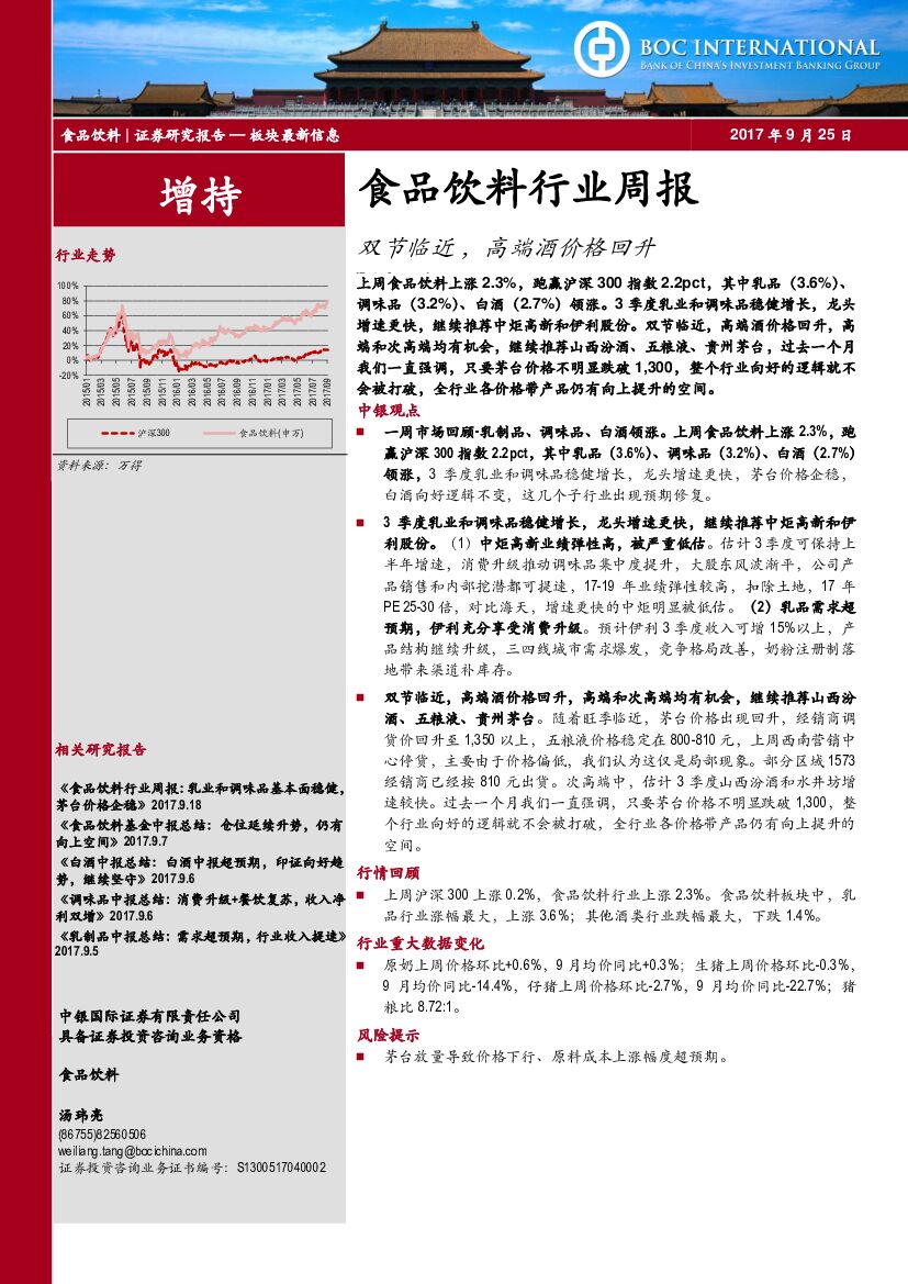 中银国际:食品饮料行业周报:双节临近,高端酒价格回升.pdf