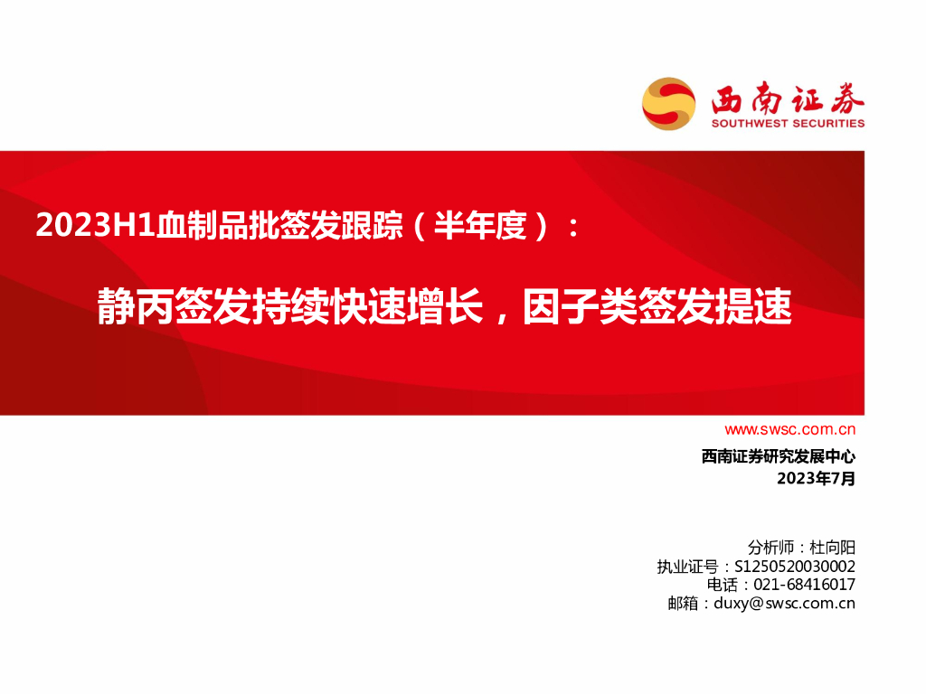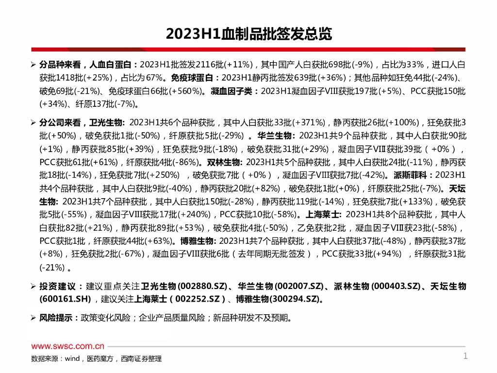 西南证券:2023H1血制品批签发跟踪(半年度):静丙签发持续快速增长,因子类签发提速.pdf
