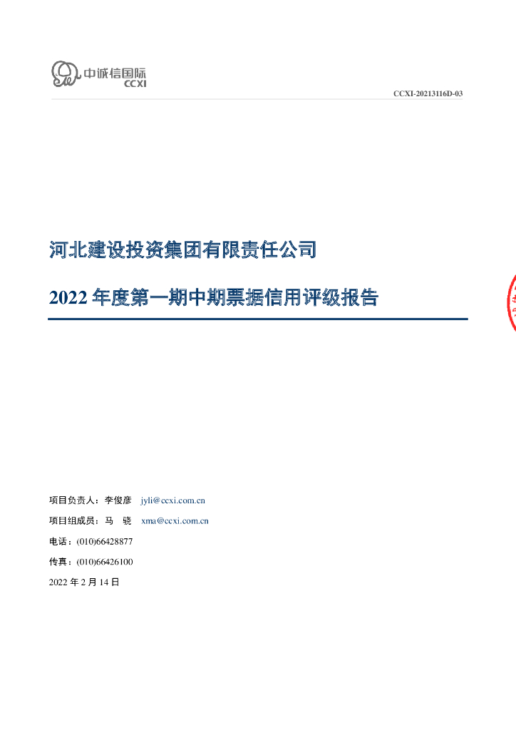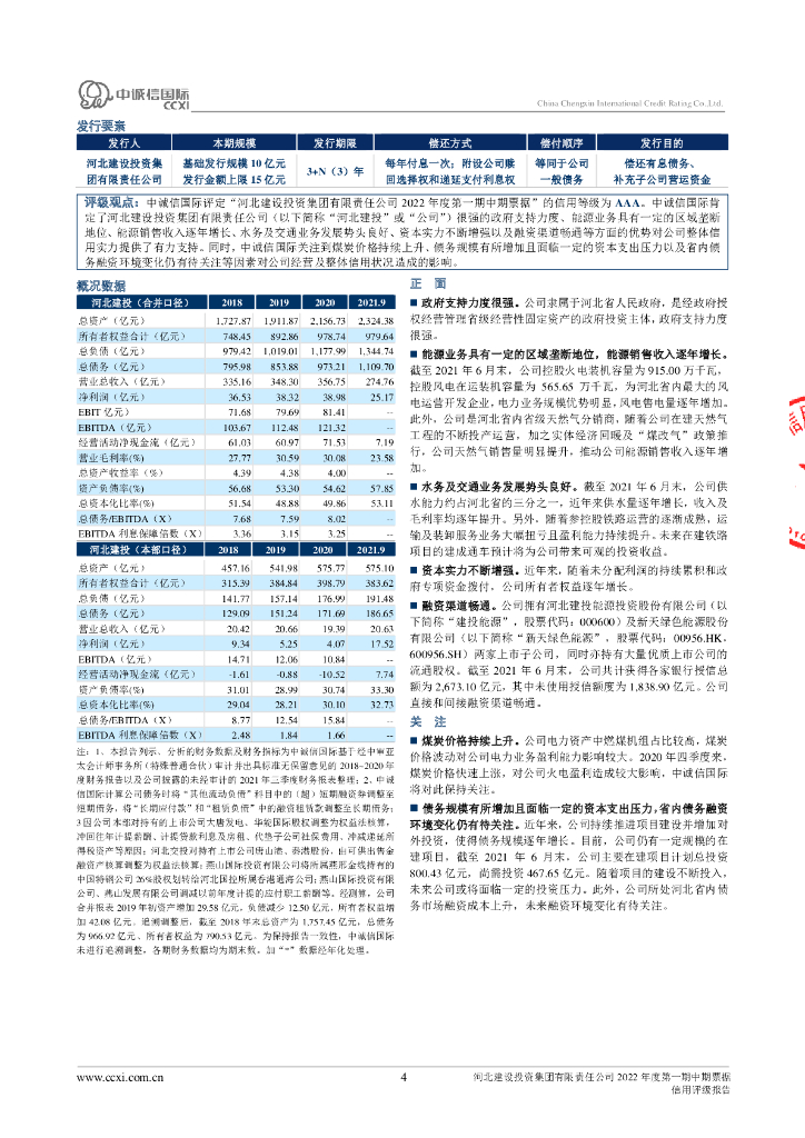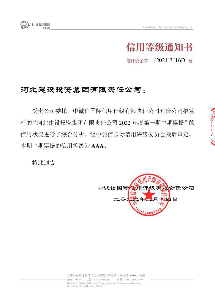 中诚信:河北建设投资集团有限责任公司2022年度第一期中期票据债项信用评级报告及跟踪评级安排.pdf
