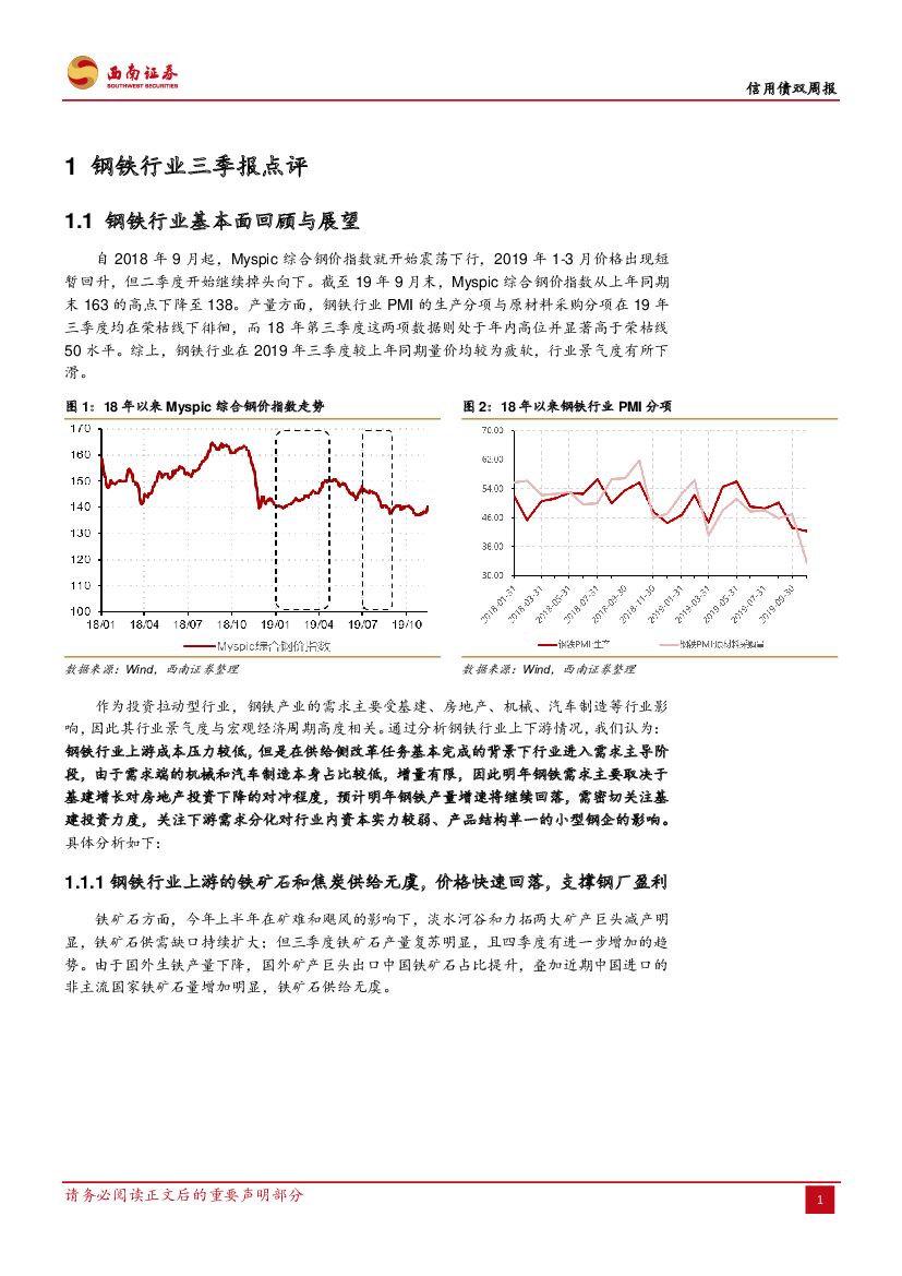 西南证券:钢铁行业2019年三季报点评:盈利空间收窄,密切关注下游需求变化.pdf