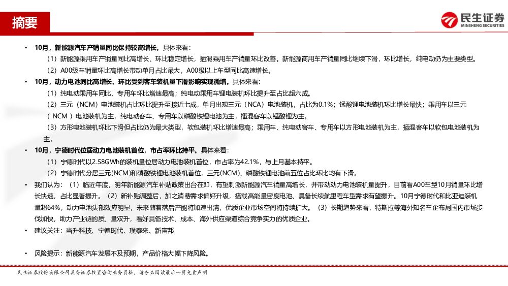 民生证券:动力电池月度装机专题报告:10月三元动力电池装机量持续增长,看好产业链质与量双升的长期趋势.pdf