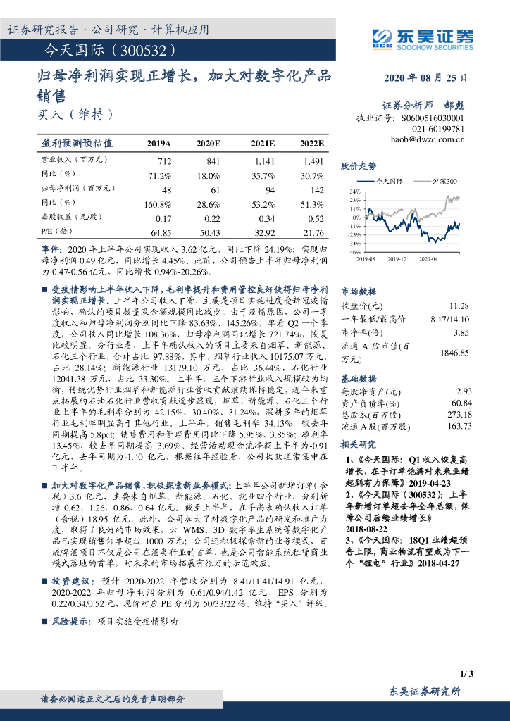 东吴证券:今天国际(300532)-归母净利润实现正增长,加大对数字化产品销售.pdf