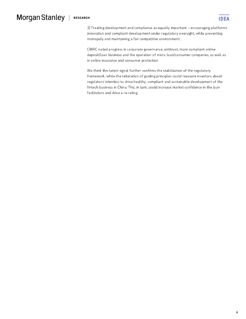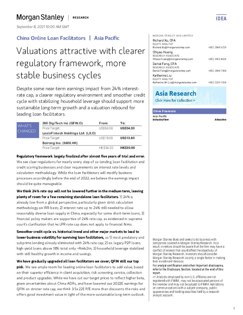 摩根士丹利:中国网贷服务商:更清晰的监管框架、更稳定的商业周期使估值更具吸引力(英文版).pdf