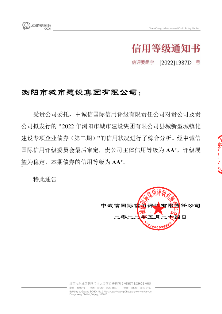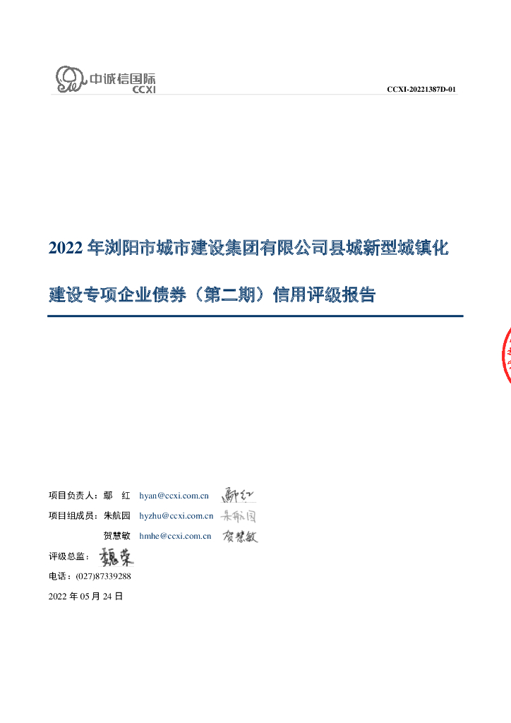 中诚信:2022年浏阳市城市建设集团有限公司县城新型城镇化建设专项企业债券(第二期)信用评级报告.pdf