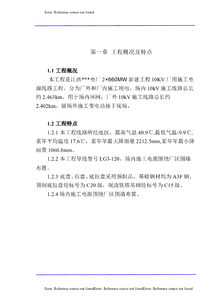 某电厂10KV厂用施工电源线路施工组织设计.doc