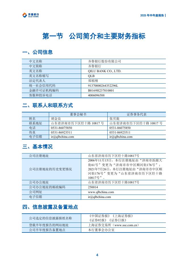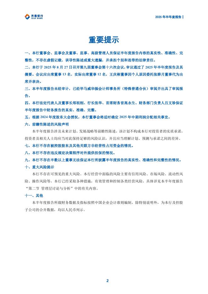 601665-齐鲁银行:齐鲁银行股份有限公司2025年半年度报告.pdf