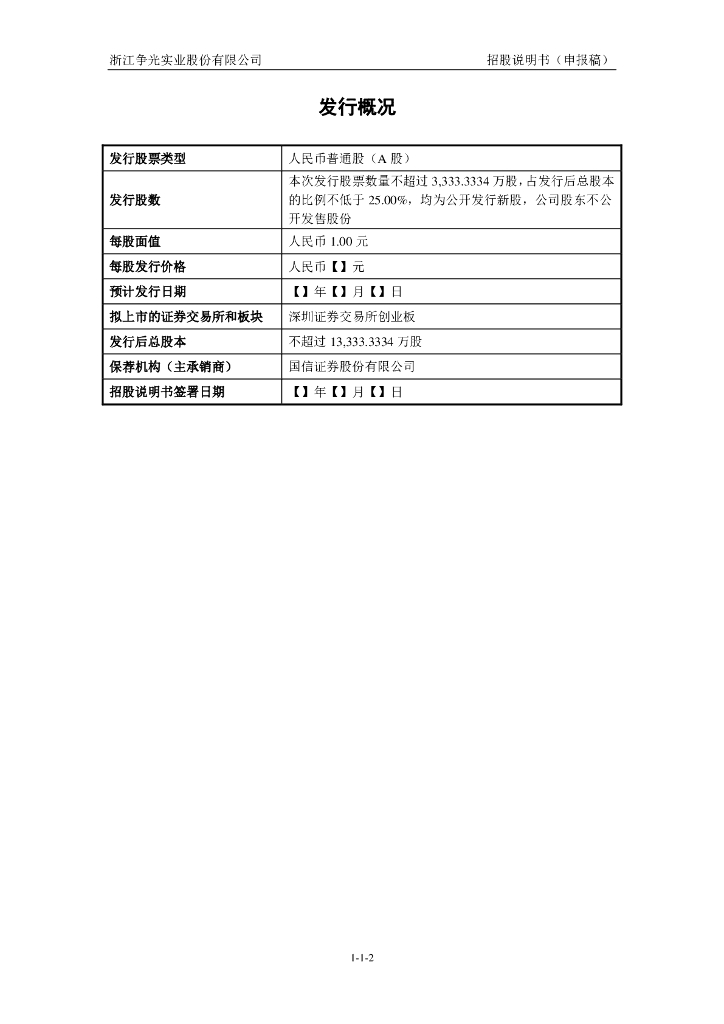 浙江争光实业股份有限公司深交所创业板IPO上市招股说明书.pdf