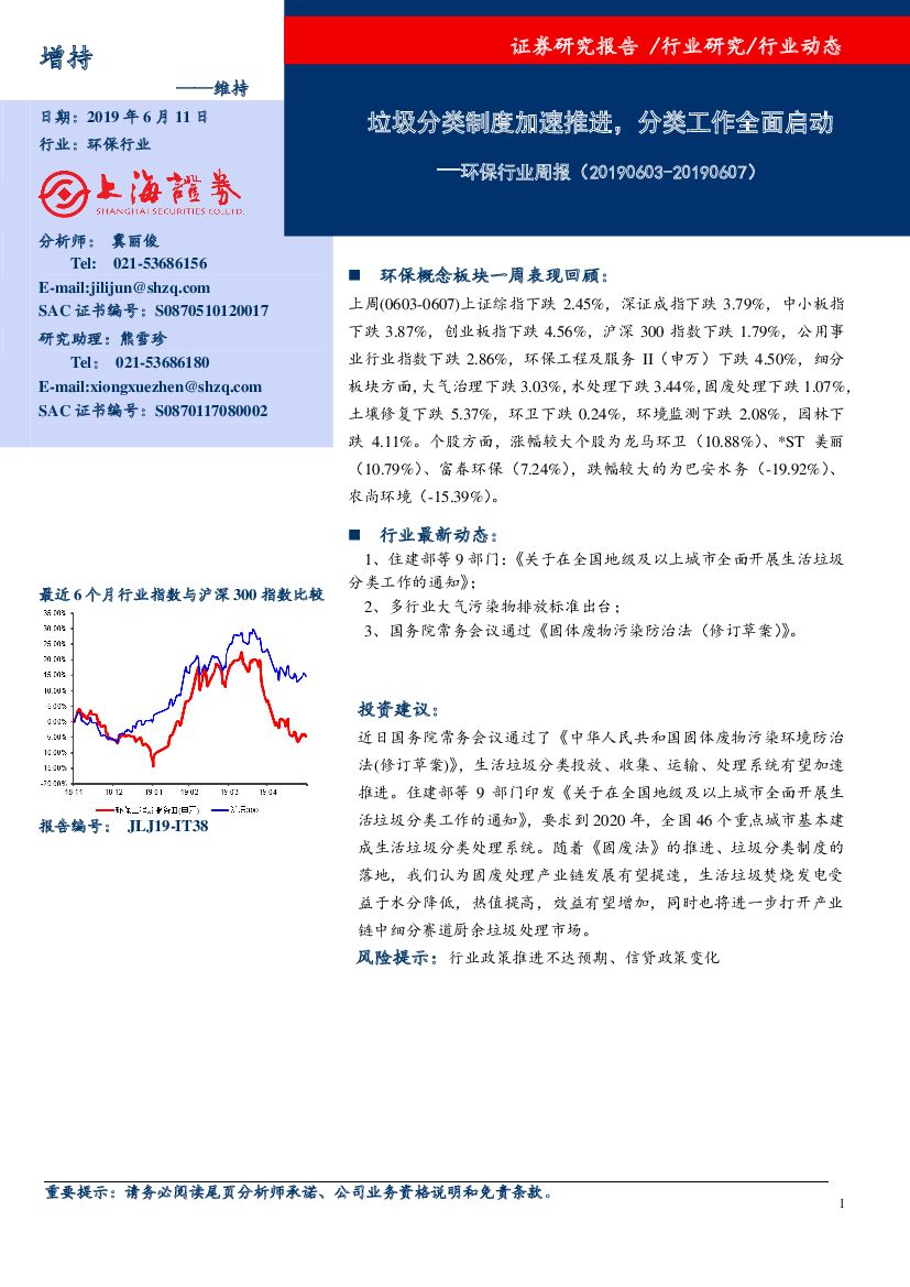 上海证券:环保行业周报:垃圾分类制度加速推进,分类工作全面启动.pdf