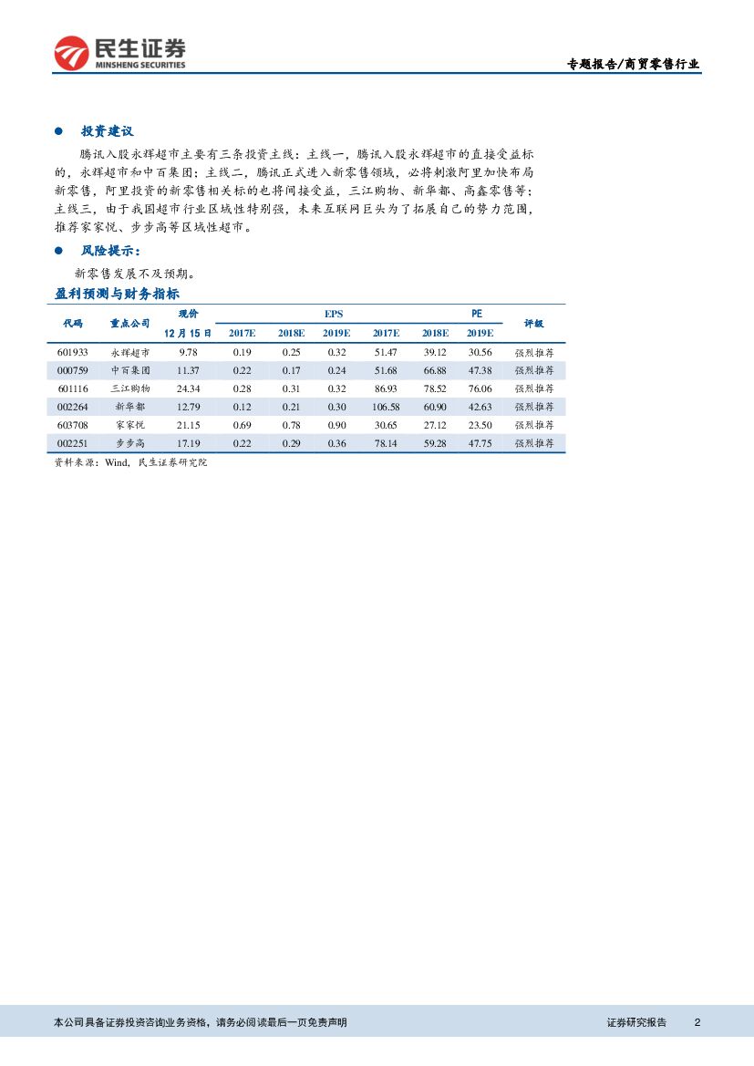 民生证券:商贸零售行业专题报告:腾讯入股永辉超市,新零售或进入“双寡头”时代.pdf