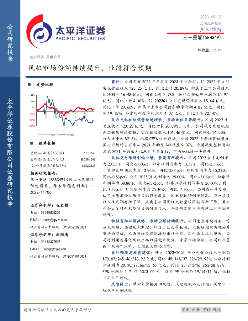 太平洋证券:三一重能(688349)-风机市场份额持续提升,业绩符合预期.pdf